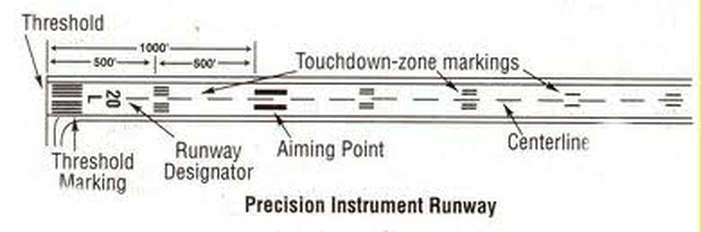 The next time you are departing from a runway with precision approach markings, take a close look at the runway distance markers. These markers are 500 feet apart. This means that the second set of markers (officially known as the aiming point, and affectionately known as the captain’s bars) is 1000 feet from the threshold.